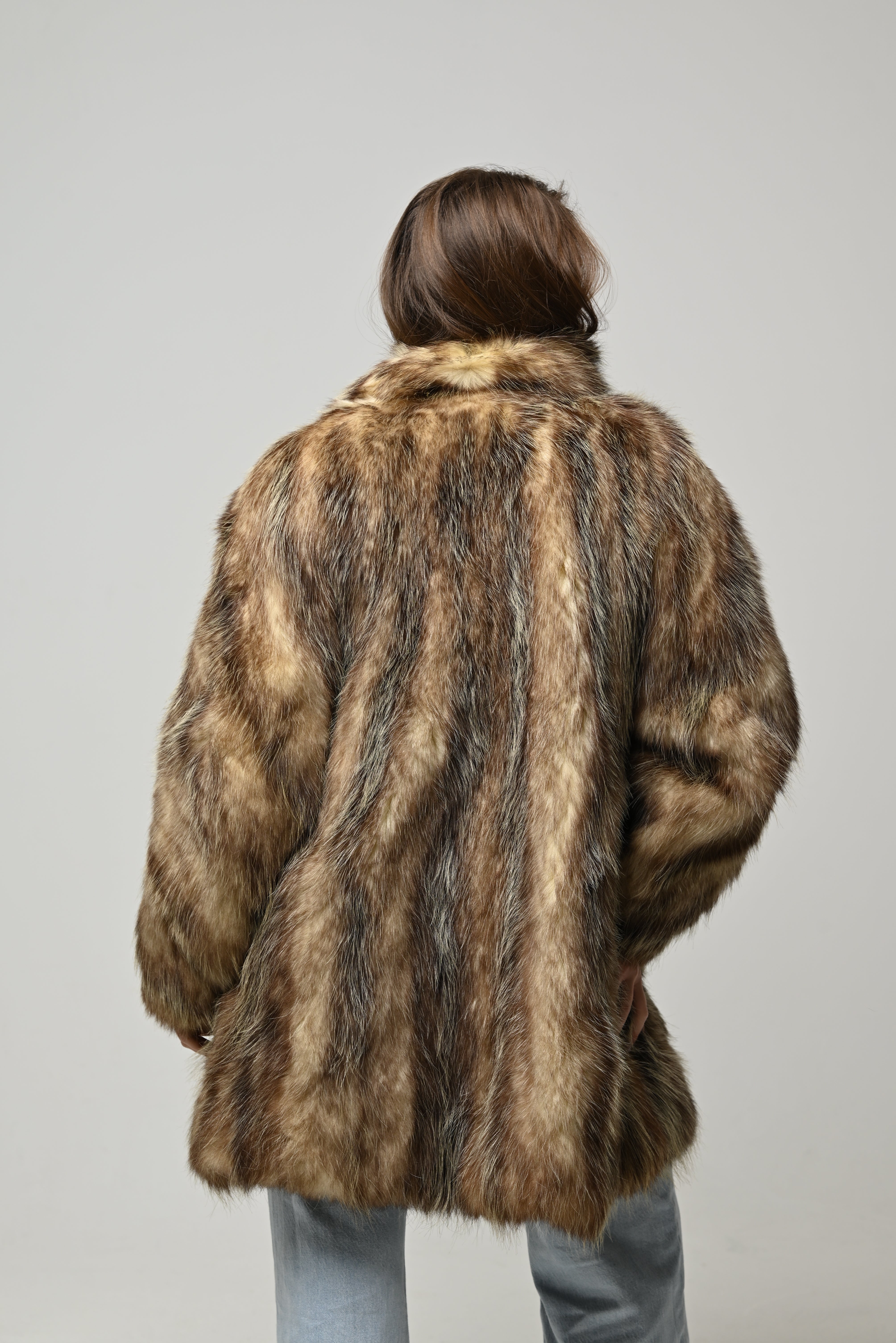 Pelliccia vintage in vera pelliccia naturale marmotta, dal volume maxi e dalla linea morbida leggermente oversize. Pelo lungo e corposo con splendide sfumature naturali tra nocciola, miele e marrone scuro che creano un effetto mosso e ricco di profondità. Collo ampio e struttura avvolgente che valorizza la figura mantenendo una vestibilità confortevole. Capo estremamente caldo e d’impatto, perfetto come statement piece per look invernali decisi ma raffinati. Vestibilità comoda.