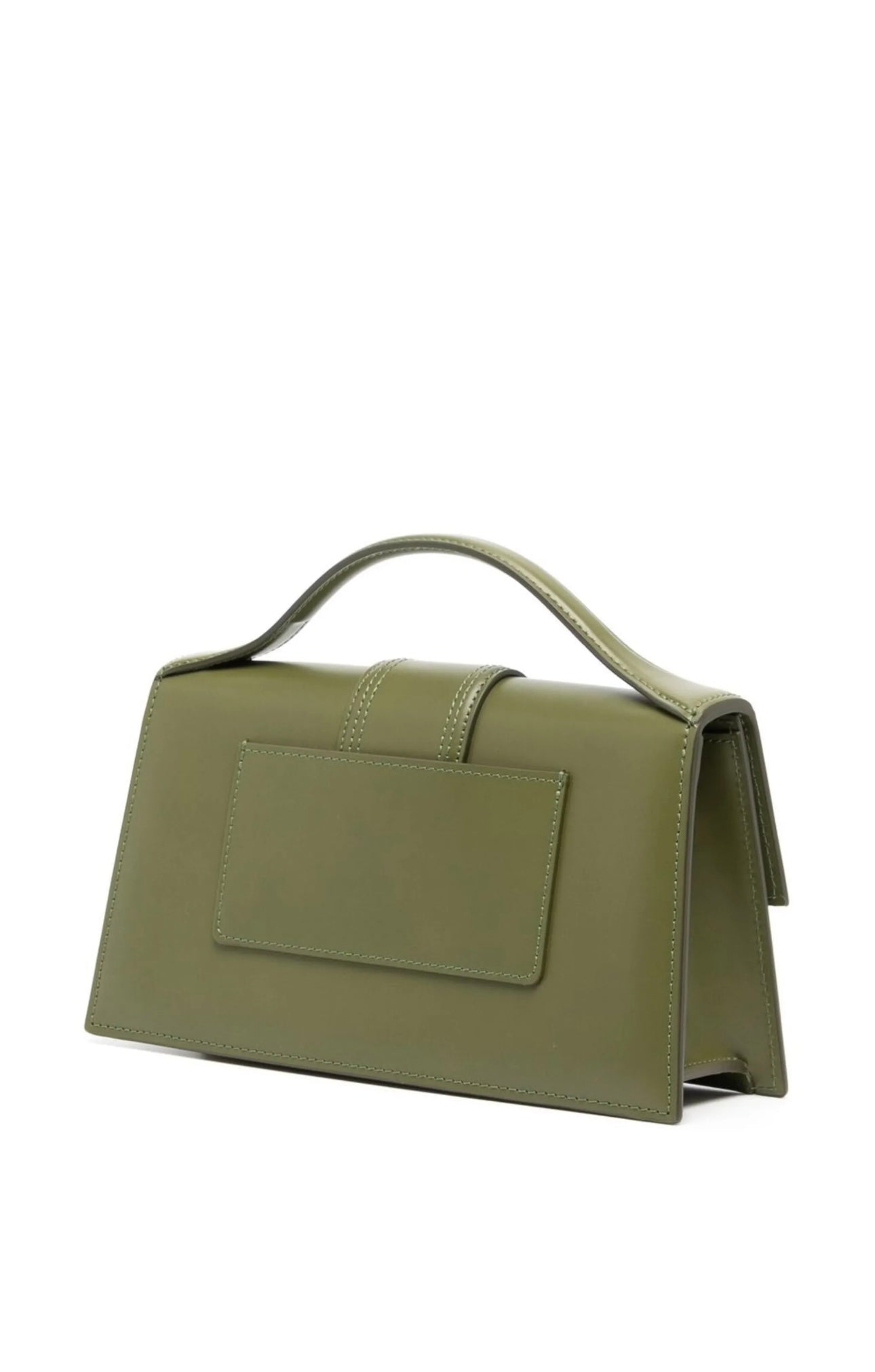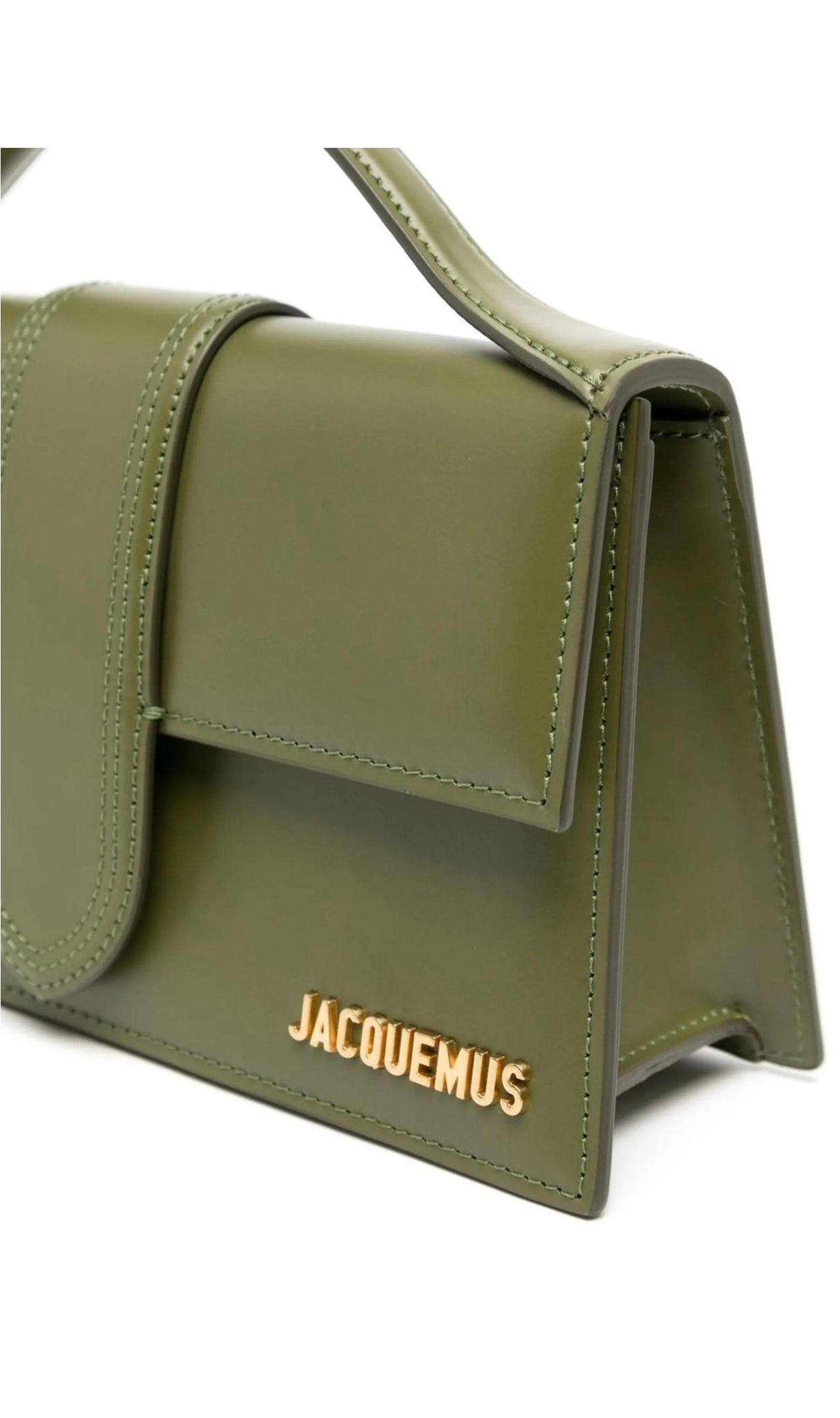 Khaki, calfskin, gold-tone logo plaque, foldover top with magnetic closure, single handle, single strap design and interior gusseted pocket.